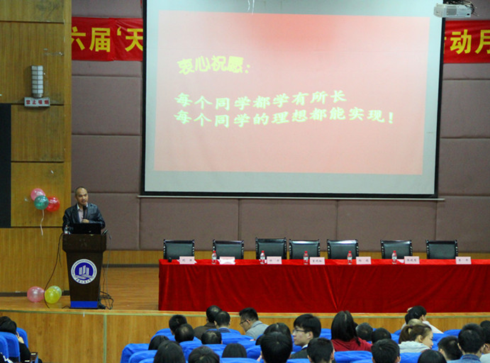 为培养员工科技创新能力、展示员工的科技创新实力,引导同学们积极参加科技活动月相关活动和各大赛事,营造员工科技创新的氛围,太阳成集团tyc234cc主页于2017年10月13日下午在南岸校区艺术楼一楼报告厅举行了第十六届“天工杯”科技创新文化月活动启动仪式。本次活动邀请到场嘉宾有武汉轻工大学教授孙亮波博士、公司教务处副处长曾晓松、校团委副书记杨娟,公司经理杜力、党总支书记刘洋、党总支副书记张晓琴、副经理李平及及全院教职工和各年级员工代表参加了开幕式。开幕仪式由公司党总支书记刘洋主持。本届科技活动月得到了员工企业深圳天工机械制造技术有限公司的大力赞助。