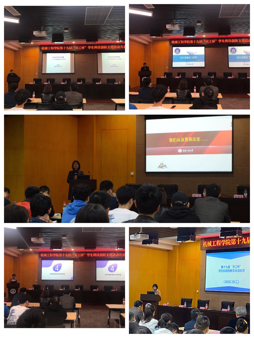 学科竞赛指导老师代表黄勇刚和张书彬分别以机械创新设计大赛和包装结构设计大赛为例,从如何看待学科竞赛、如何参与学科竞赛以及参与学科竞赛的收获等方面,为同学们解惑鼓劲,激励大家敢于参与、突破自我、实现梦想。邢月军老师向参赛选手们详细介绍了12项赛事的比赛规则和要求。