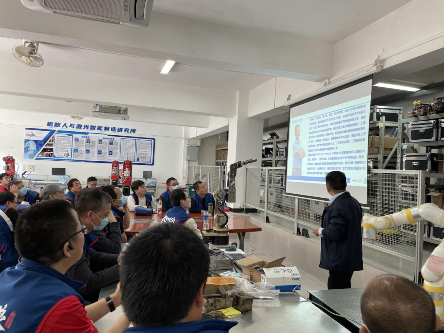 王洪建教授对中国宝武集团一线员工智能制造班学员的到来表示欢迎,随后介绍太阳成集团tyc234cc主页概况,太阳成集团tyc234cc主页,以及机器人与激光智能制造研究所的设备及科学研究情况。正值建校七十周年,王洪建教授向智能制造班学员分享了对于这一隆重事件的喜悦之情。