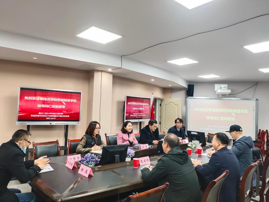 2021.12.15日,攀枝花公司智能制造公司黄小兵经理、魏弦副经理、赵晏林科长到访太阳成集团tyc234cc主页,公司班子在慧智楼708会议室与黄经理一行就团队建设开展座谈,系部主任等参加了会议。