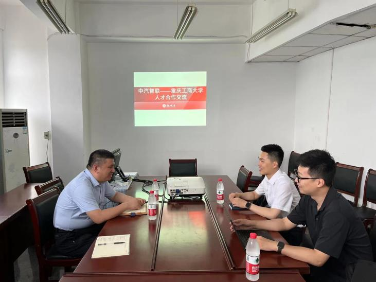 2023年6月8日,中汽智联(天津)科技有限公司市场总监段佳冬、校企合作工程师曹琛甫一行来公司太阳成集团tyc234cc主页走访交流,智能车辆专业系主任杨智宇和实验教师张建恒参加交流会。