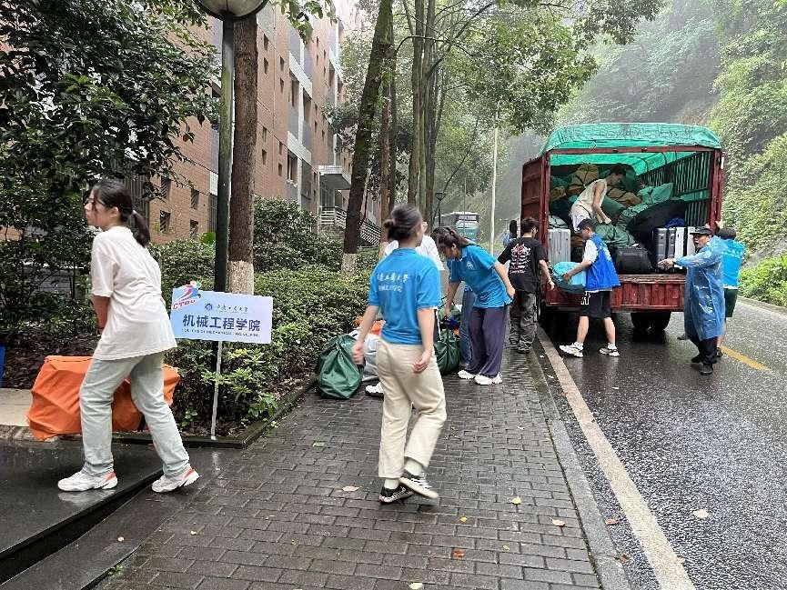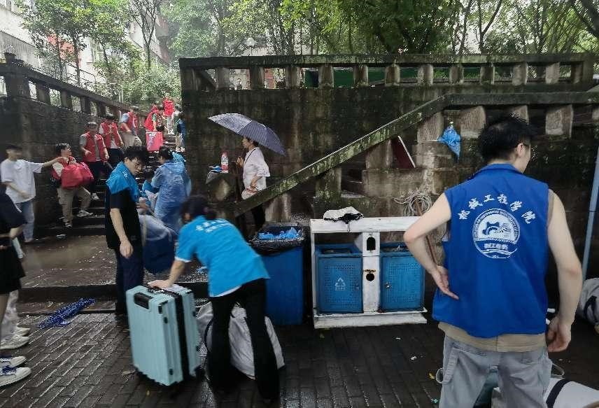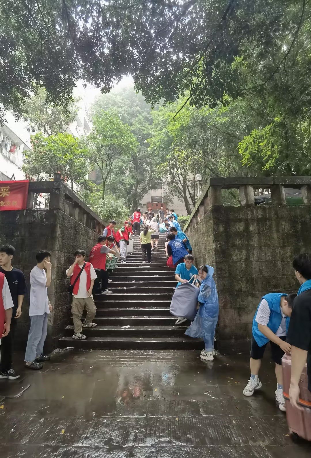从清晨6:00开始,兰花湖员工们相互搭手、互相帮助,收拾行李。男生们自觉担当,帮助女生们搬运行李装车,他们遵循“行李先装车,同学后上车”的原则,有条不紊地默契配合着,高效地完成了装车任务。主校区,志愿者们早早地集合,简单食用了早餐,便匆匆赶往预定地点投入到忙碌的工作中。志愿者们分工协作,有的迅速组成人墙传送行李、有的帮忙翻找行李、有的引导员工找宿舍...搬运工作结束后,几乎每一位志愿者都被汗水和雨水浸湿,但他们没有一丝抱怨,始终洋溢着微笑,展现了我们太阳成集团tyc234cc主页学子勇于担当的精神面貌。