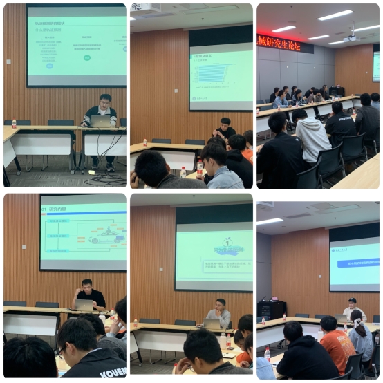 会上,黄剑龙同学从智能驾驶方面讲述了无人驾驶汽车路径规划算法研究概述,对无人驾驶汽车路径规划算法相关基础理论进行了分析讲解;刘瀚蔚同学从智能驾驶方面讲述了无人驾驶汽车路径规划与跟踪控制研究内容,主要对无人驾驶路径规划和跟踪进行简要介绍和仿真展示;王吉睿同学从智能生活机器人方面介绍了基于深度学习的目标检测;张龙发同学从生活支援机器人方面介绍了底盘设计及其运动控制相关研究;赵均同学从智能驾驶方面讲述了无人驾驶轨迹预测研究现状,对无人驾驶研究方法与未来可改进方向进行了分析讲解;万云龙同学从智能驾驶方面讲述了车辆轨迹预测模型,对基于行为驱动的车辆轨迹预测模型进行了分析讲解。