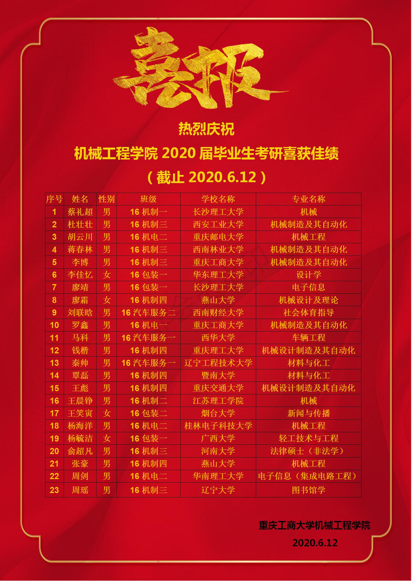 2020届毕业生考研喜报
